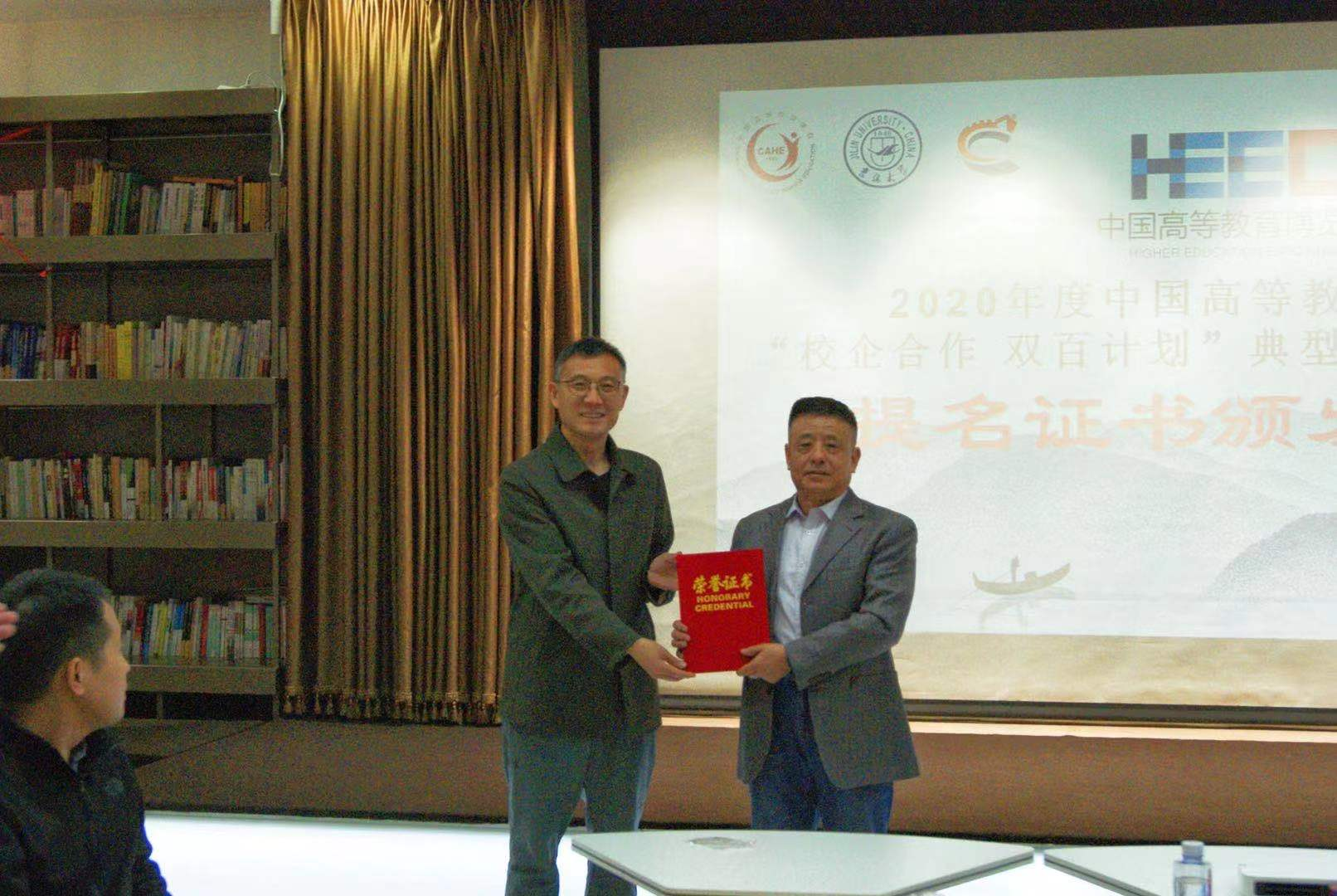 会议尾声由中国高教学会产教融合研究分会陈伟秘书长为此次 “校企合作 双百计划”案例颁发典型案例提名证书。